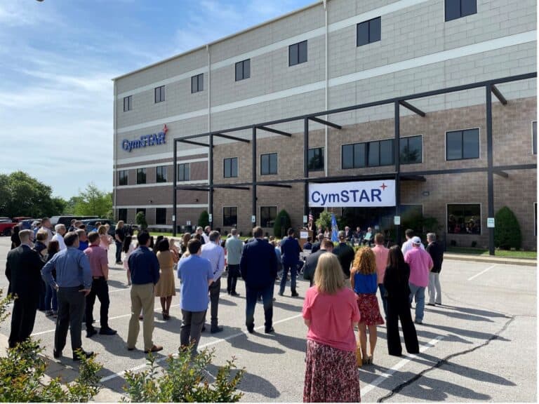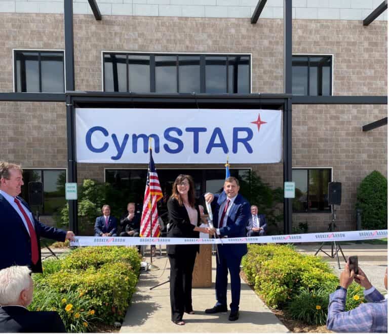 The ribbon cutting ceremony was attended by Congressman Kevin Hern; The Honorable Ross Ford, Oklahoma State Representative; The Honorable John Haste, Oklahoma State Senator; Mayor Debra Wimpee, Broken Arrow; Mike Neal, President and CEO, Tulsa Chamber of Commerce; Jennifer Conway, CEO, Broken Arrow Chamber of Commerce; and Dan Marticello, CEO and President, CymSTAR. The CymSTAR ceremony was also attended by other local and state government officials, customers, partners, media members, suppliers, and employees.